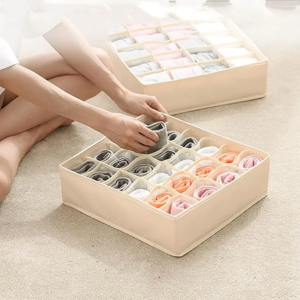 This 24-grid sock organizer is designed to keep your socks and small accessories neatly sorted and easy to find. Made from high-quality non-woven fabric, it is lightweight, breathable, and durable. The foldable structure allows for convenient storage when not in use, making it an ideal solution for efficient and organized living.