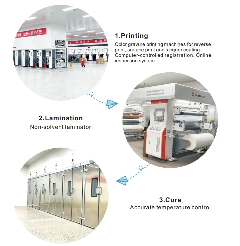 | Printing Tech | Gravure printing (up to 10 colors), Digital printing (suit for small order), Full matt/gloss, Holographic, Hot stamp, Anti-static. |